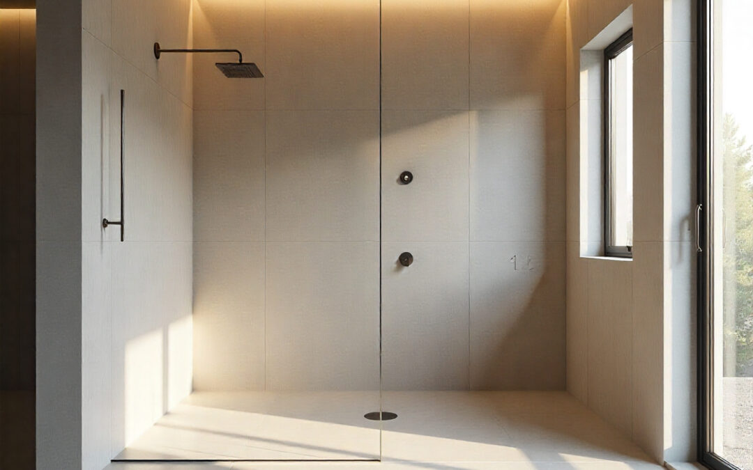 Strefy mokre / prysznice: tadelakt (systemowo), mikrocement (z hydroizolacją).