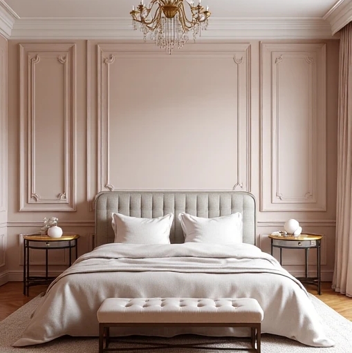 W sypialniach sztukateria może pełnić funkcję dekoracyjną, np. w formie paneli ściennych za łóżkiem, które tworzą efektowne wezgłowie. Listwy ścienne w geometrycznych układach dodają wnętrzu dynamiki, a jednocześnie wprowadzają przytulną atmosferę. Subtelne, malowane na biało listwy dobrze komponują się z aranżacjami skandynawskimi czy boho.