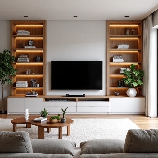 W salonach zabudowy do sufitu mogą pełnić funkcję regałów na książki, dekoracje czy sprzęt RTV. W połączeniu z wnękami na telewizor lub kominek tworzą elegancką i funkcjonalną ścianę, która staje się centralnym punktem pomieszczenia. Tego typu meble sprawdzają się szczególnie w nowoczesnych aranżacjach, gdzie liczy się minimalizm i porządek.